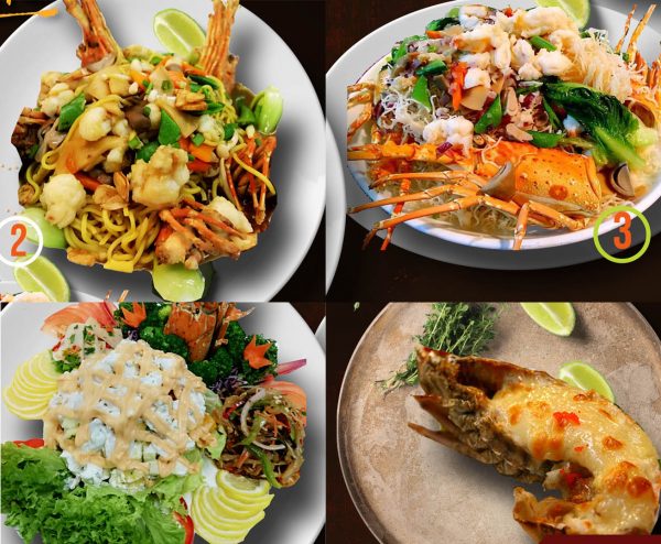 | Cooking Style | Braised with Noodles & Assorted Mushroom, Braised with Dry / Fry Vermicelli, Baked with Cheese, Fried with Egg & Pepper, Steamed with Garlic & Ginger, Stir Fried with Ginger & Spring Onion, Stir Fried with Assorted Vegetable, Baby Lobster Kong Poh Style (Pre-Order), Kam Hiung Style Dry / Butter Creamy, Sweet & Sour / Sweet & Spicy, Signature Hainanese Style (Best Companion with Deep Fried Buns: RM3 each), Salad Lobster Appetizer |